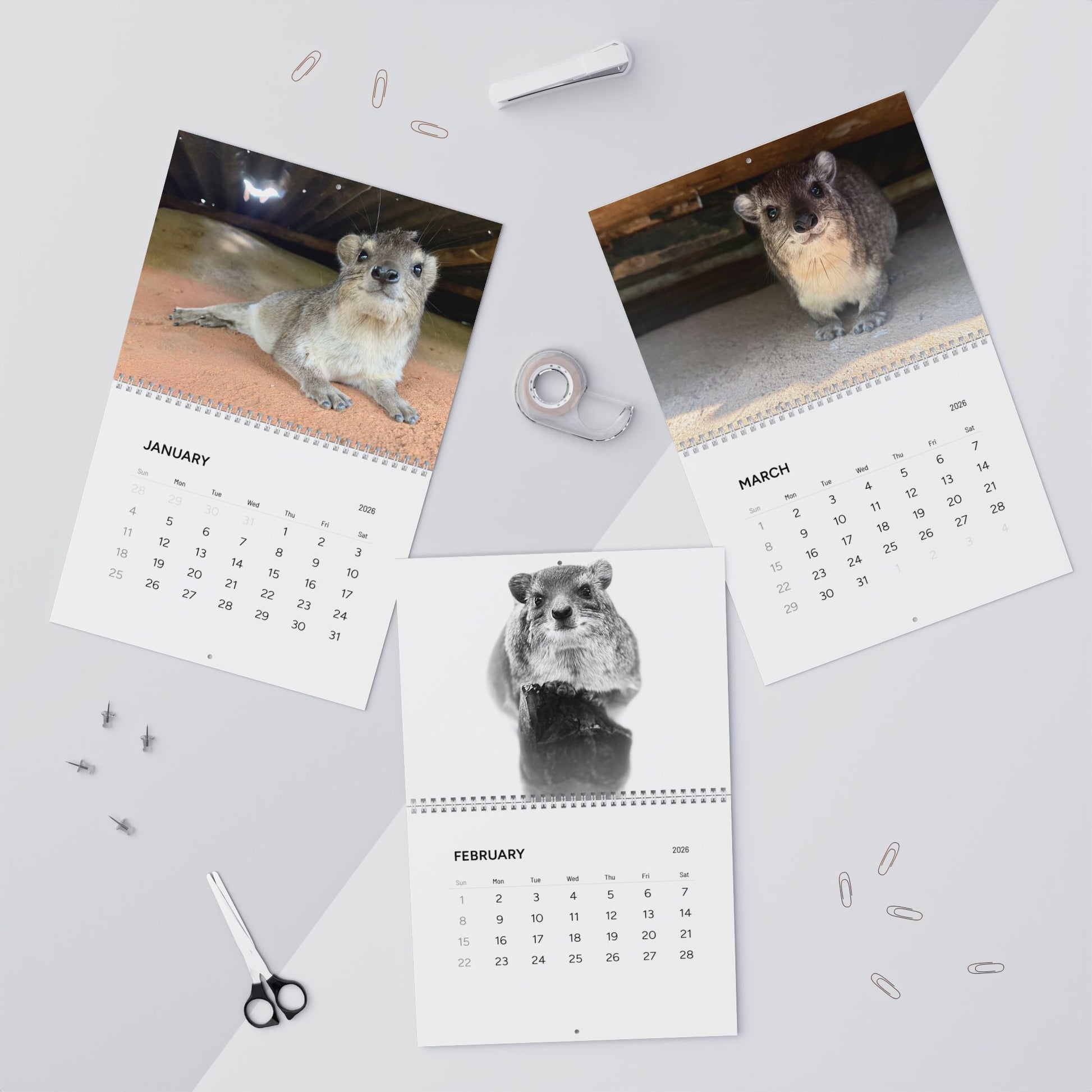 Hyrax Wall Calendar 2026 – Cute Bush Hyrax Monthly Wall Calendar
